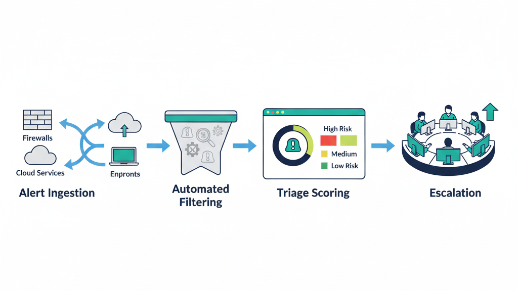 An effective alert handling process is a structured assembly line. At our firm, we see raw alerts from firewalls, endpoints, and cloud tools come flooding in. The goal is to shrink the time from detection to a contained response. We help MSSPs build a tiered model and a robust alert triage prioritization process that moves them from a reactive help desk to a true SOC.