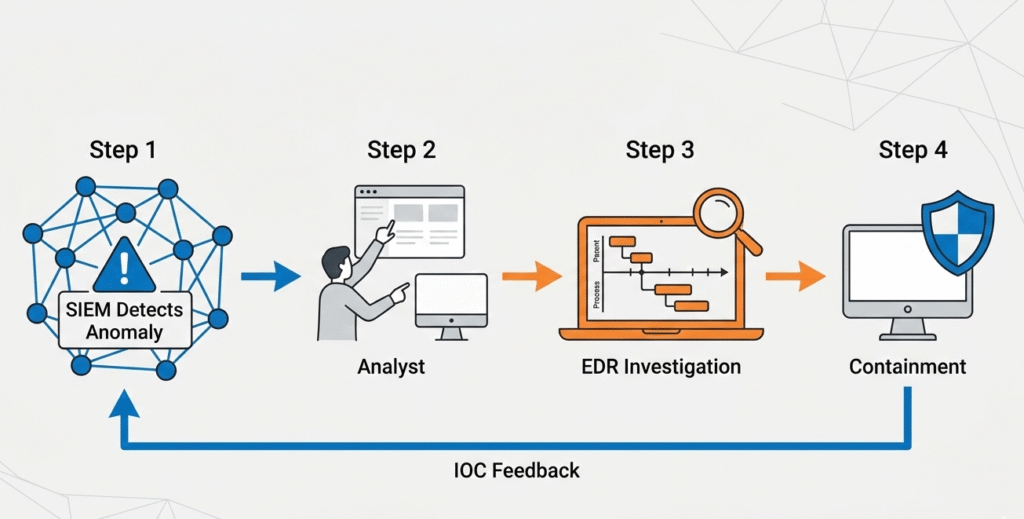 Strong programs don’t debate which is better. They design workflows that use both deliberately, macro visibility from SIEM, micro forensics and action from EDR.